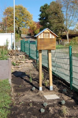 Aus einem ökologisch minderwertigen Hang ist ein vielfältiges Biotop geworden, bei dem die Kinder tagtäglich die Entwicklung verfolgen können. Ein gutes Anschauungsbeispiel auch für Diejenigen, die mit ihrem Garten nicht viel Arbeit haben wollen – pflegeleicht, schön und ökologisch sinnvoll.
